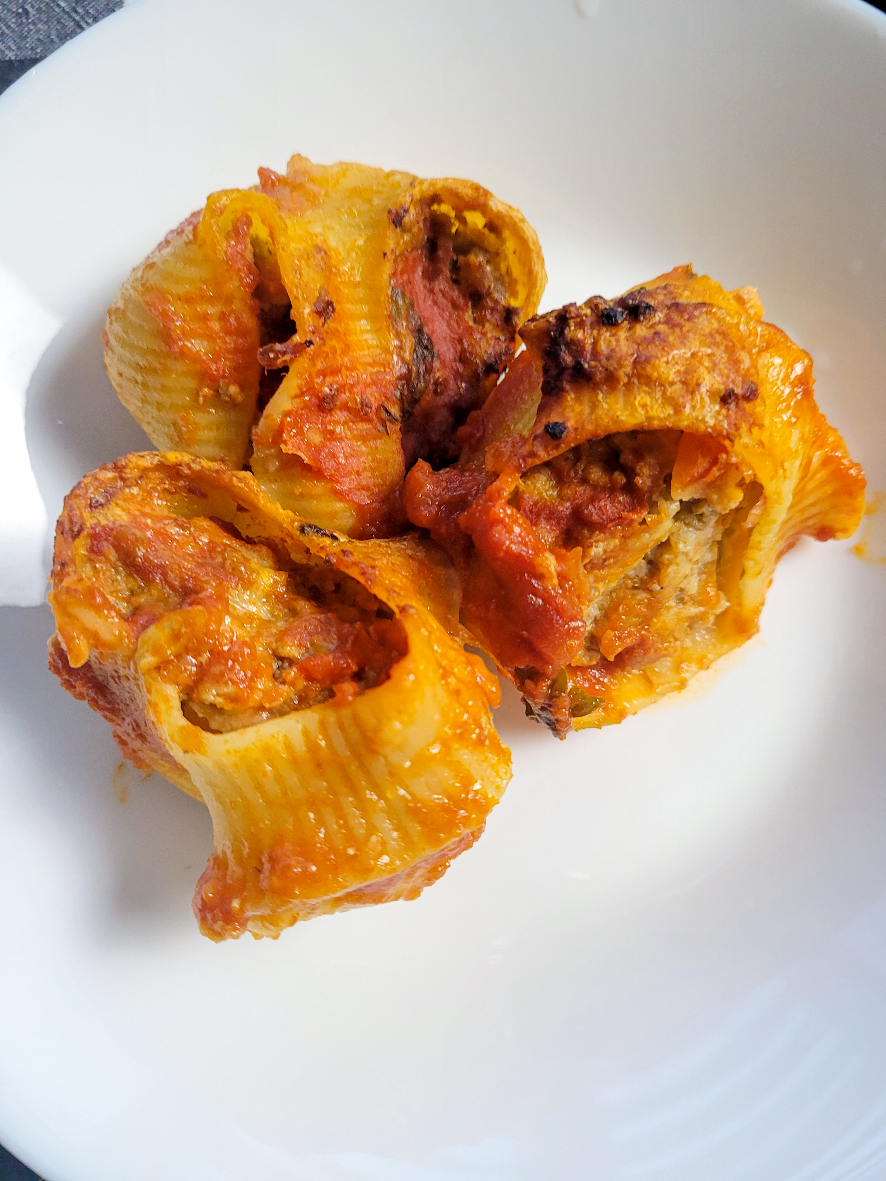 One of the trickiest parts of making stuffed shells is getting really good shell pasta! Poor quality shell pasta falls apart or rips too easily and you will be very frustrated. These ones from Cataldi’s worked really well! You have to pre-boil them like you do with lasagne before stuffing them.